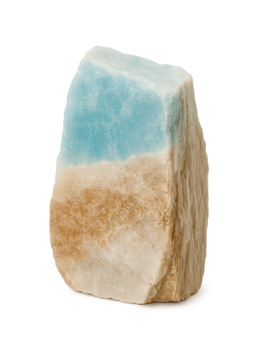 Discovered only recently in Pakistan, Caribbean Calcite is considered a rare and collectible gemstone. Its swirling ocean-like patterns — a mix of blue calcite with brown and white aragonite — make each piece a miniature seascape, unique and captivating.